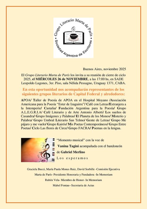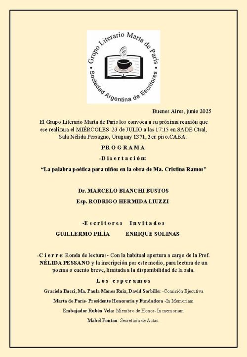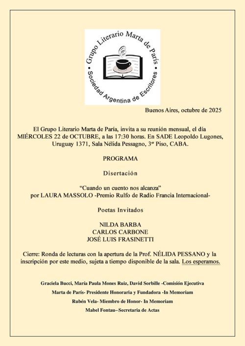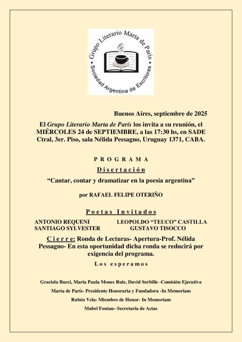 GRUPO LITERARIO MARTA DE PARIS- 25-6-25
